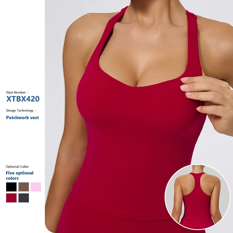 XW-XTBX420 Wholesale Breathable Fitness Exercise Halter Neck Gym Clothing Activewear Slimming Workout Women's Sleeveless Vest